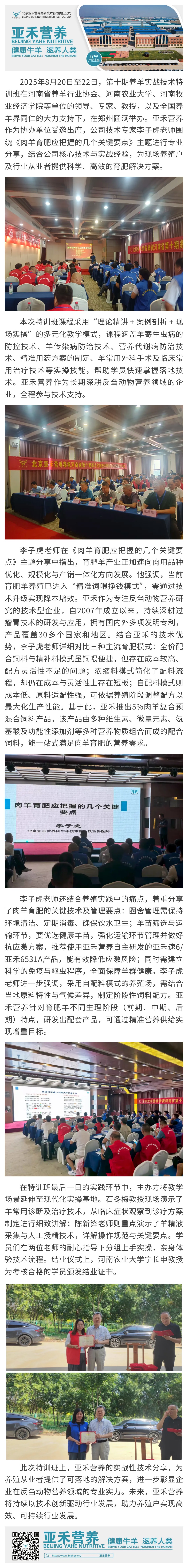 亚禾营养受邀出席第十期养羊实战技术特训班